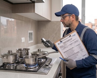 Se inspeccionan los artefactos que funcionan con gas (calentadores, estufas, hornos, etc.) para asegurar su correcto funcionamiento.